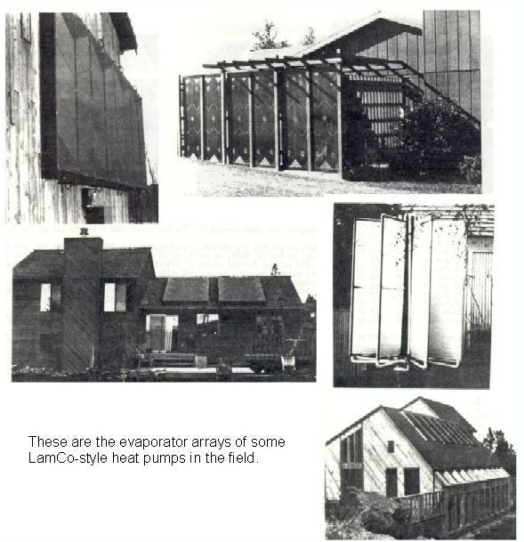 Before writing this post, I looked to see what has changed over the past 40 years in air-to-air heat-pump technology. Some air-to-airs claim COPs of up to nine. But in New Jersey, for instance, when it gets below freezing, air-to-airs can no longer heat a home, so a supplemental heater is needed. That same page mentions some technological improvements, such as variable-speed pumps (AKA compressors) and better refrigerants. If Dennis’s heat pump had not been wiped out, I expect that it would have also benefited from such improvements. I heard of COPs of 12 and 16 with Dennis’s heat pump under ideal conditions, and I am confident that it would still get at least twice the COPs of air-to-airs under the same conditions, because of that panel.